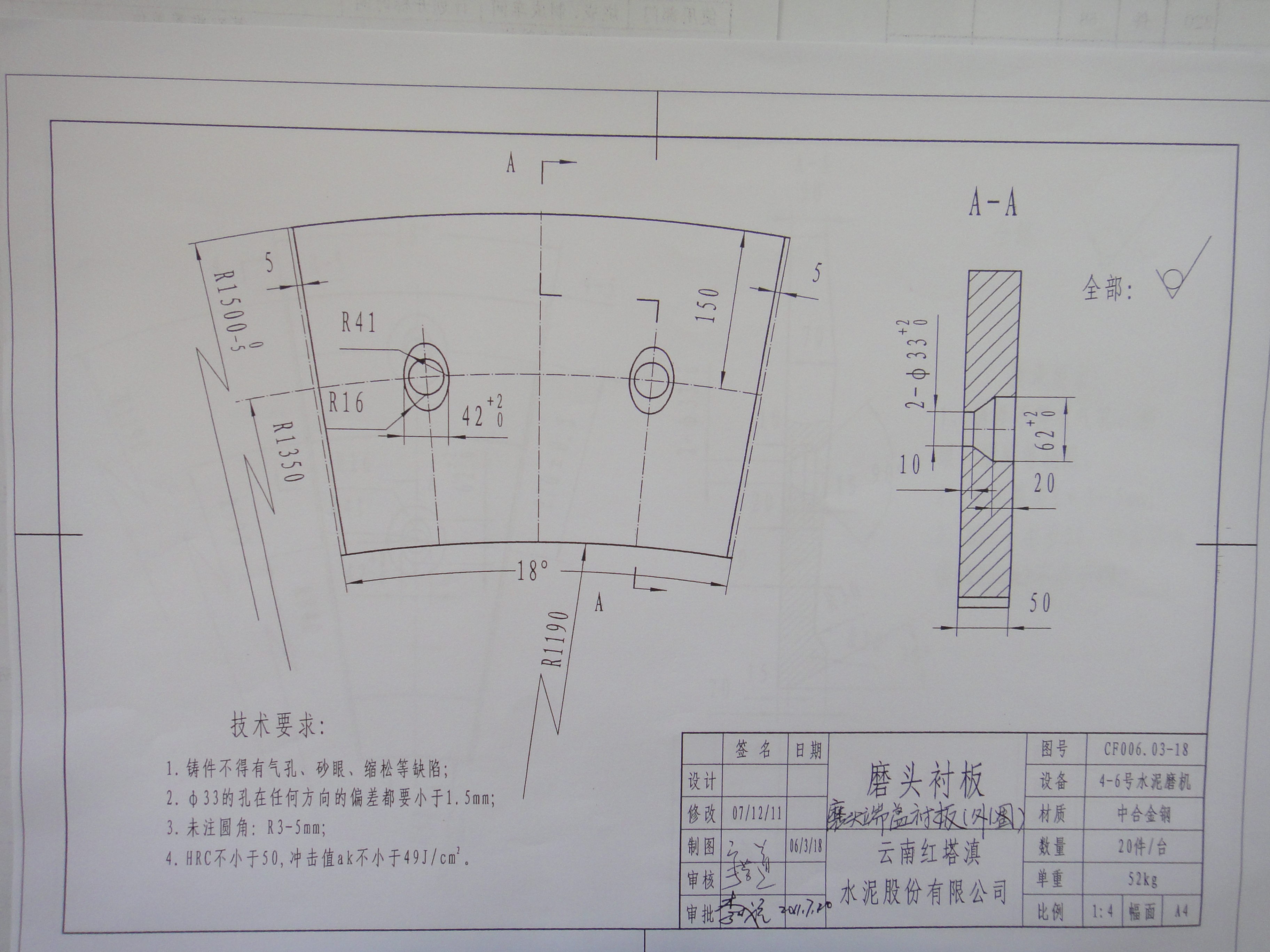 磨头端盖衬板 (外圈)【单重52kg/件】 25|件 3期水泥磨 CF006.03-18 CF006.03-18